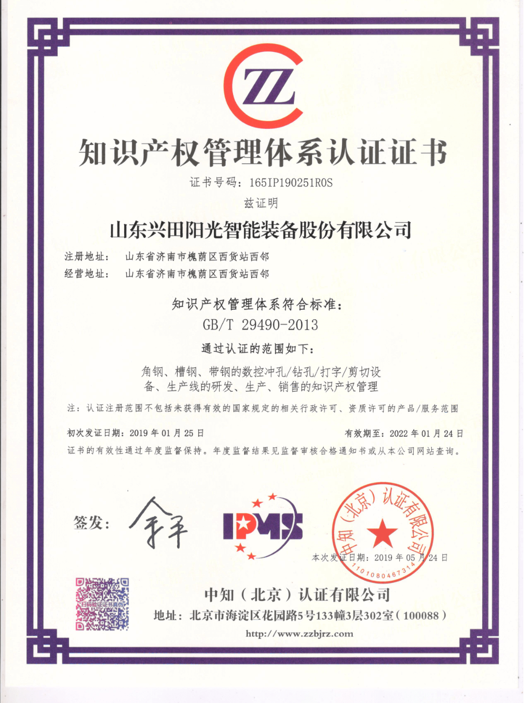 知識產權管理體系認證證書