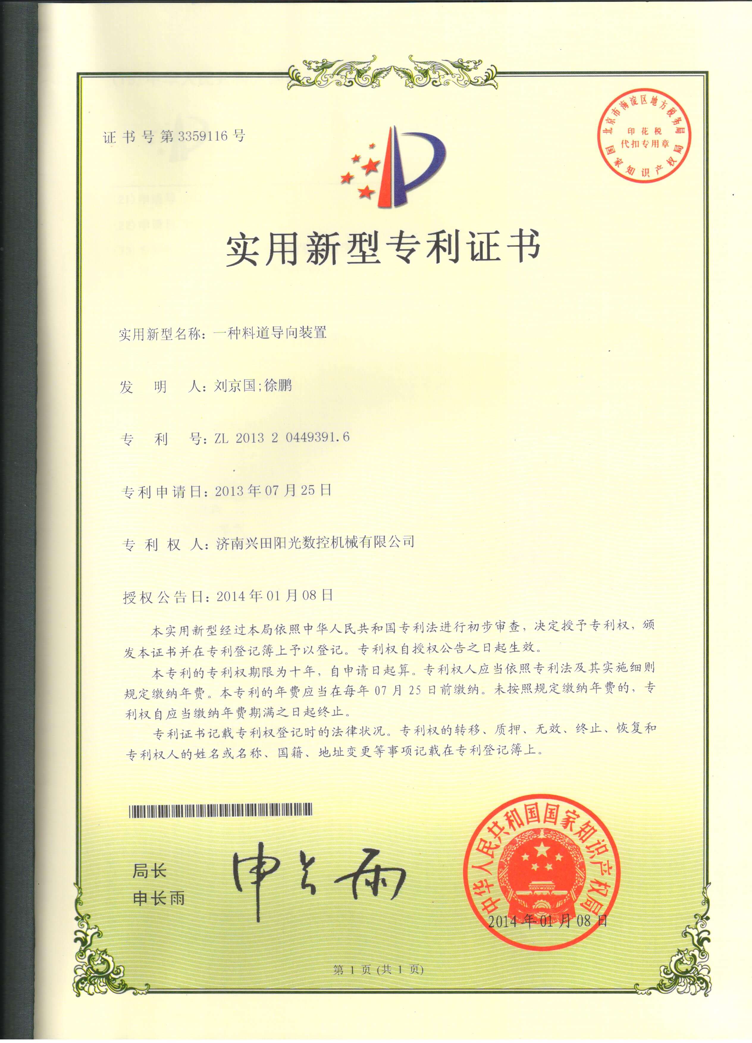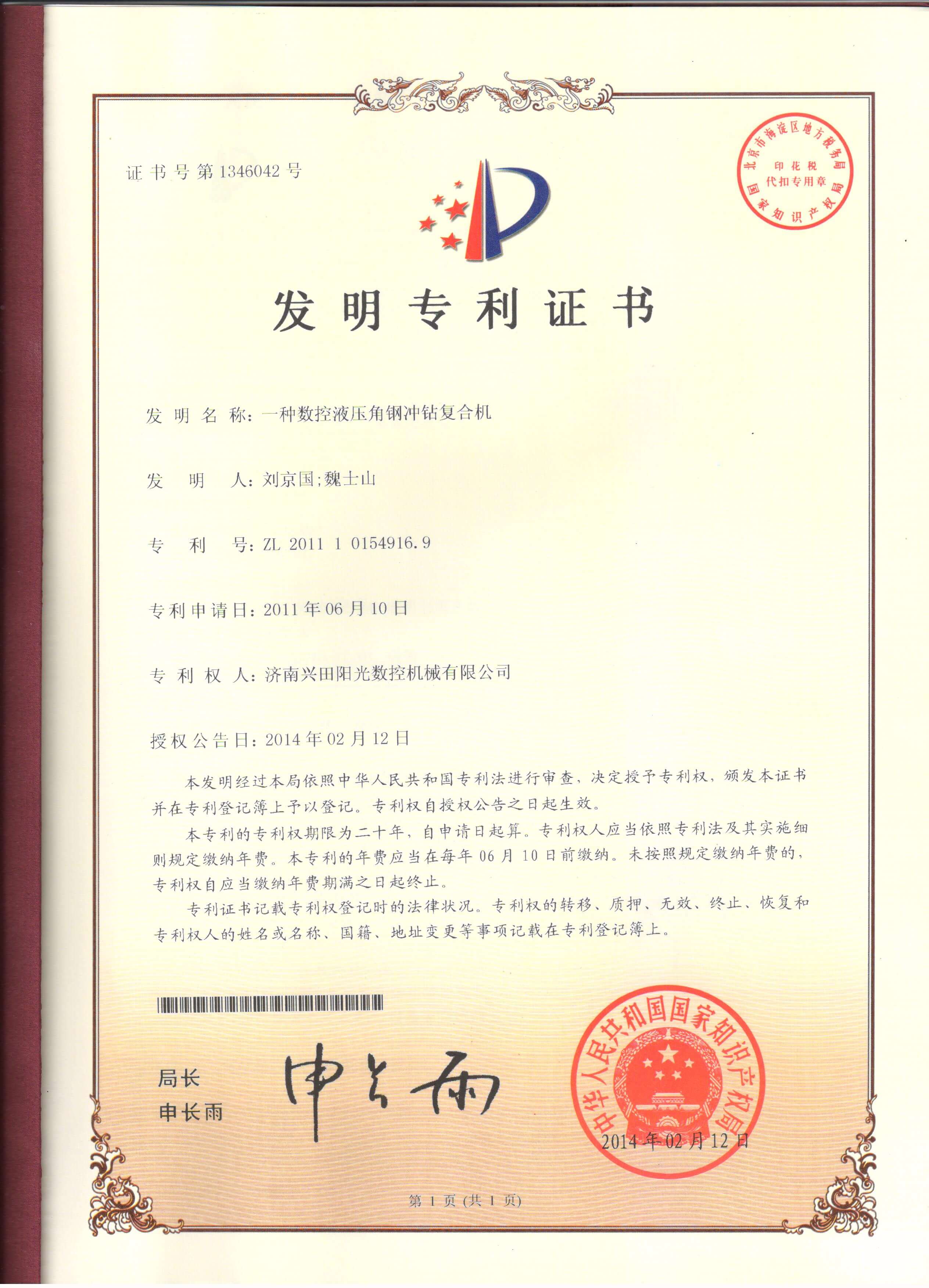 • 專利證書